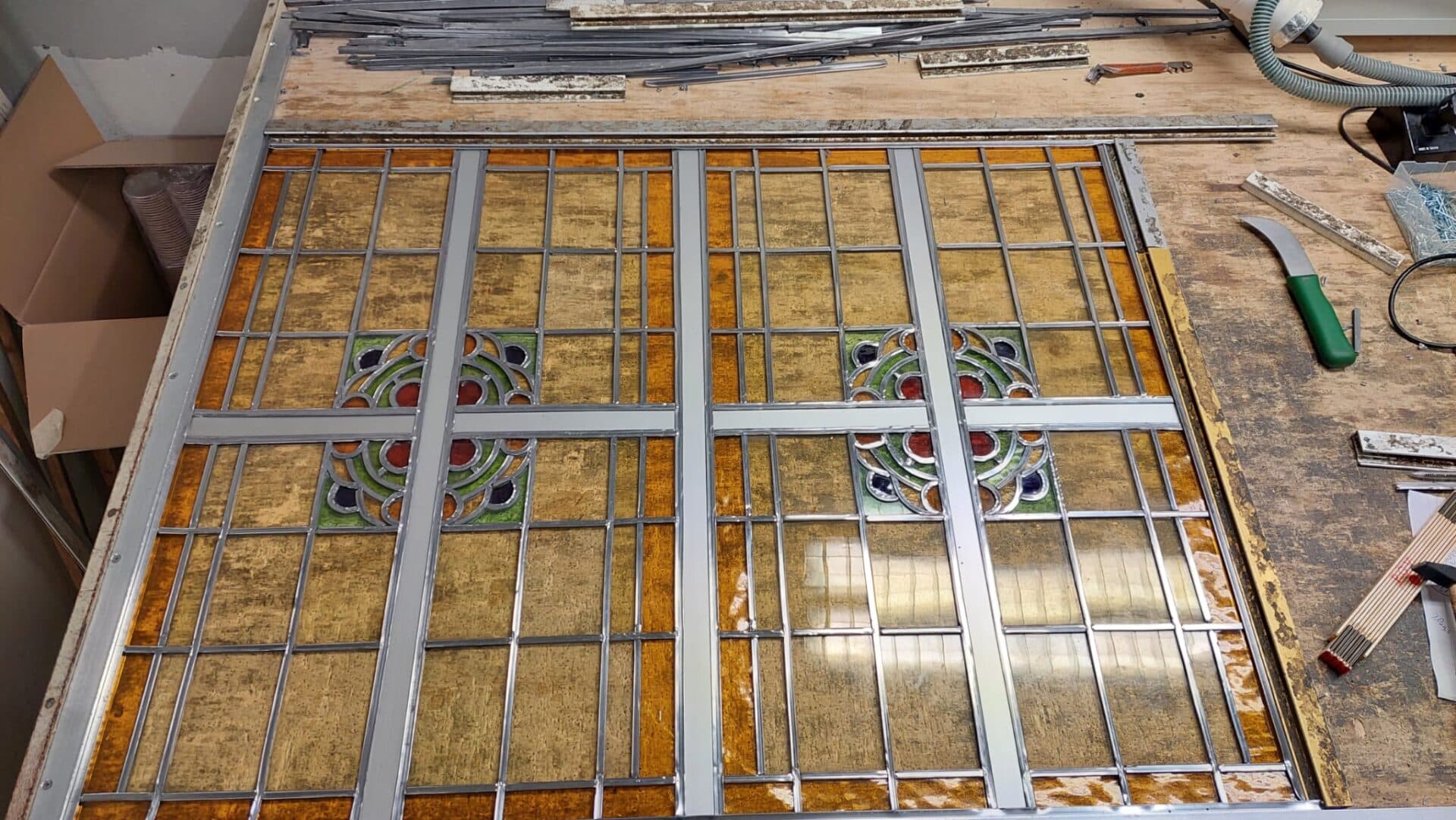 Ook het herstellen en restaureren van jouw glas-in-lood kan je gerust aan onze glas-in-lood specialisten overlaten. We kijken met je mee, leggen uit wat er aan de hand is en vertellen eerlijk wat wel en niet nodig is. Mogelijk zullen we één glasstuk moeten vervangen, het loodwerk vernieuwen en soms het hele paneel demonteren om het opnieuw te assembleren. Maar wat er ook gedaan moet worden, we brengen het paneel weer terug in de oorspronkelijke staat.