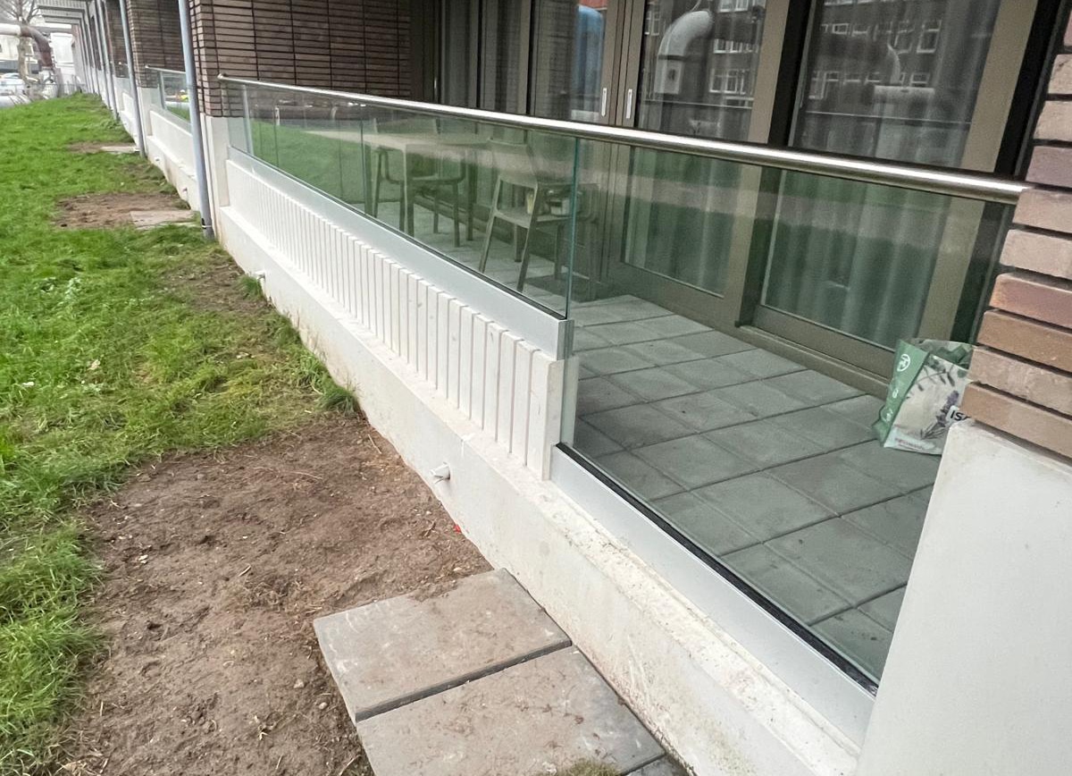 De belangrijkste functie van een glazen balustrade is natuurlijk de valbeveiliging. De wet (Besluit Bouwwerken Leefomgeving en NEN-normen) stelt strenge eisen aan glazen balustrades. Daarin gaat het vooral over de doorval- en letselveiligheid ervan en de eisen die daaruit volgen over de minimale hoogte en zijwaartse belasting van het glas door bijvoorbeeld de wind of leunen. We kijken dan ook goed naar de dikte en samenstelling van het gelaagde veiligheidsglas en wat daarvoor nodig is in de onderhavige situatie. Zo komen we tot een verantwoord advies voor het glas van glazen balustrades: Gelaagd én gehard.